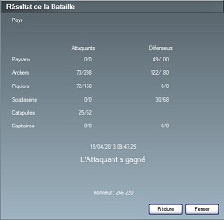 Mon armée standard, que je stocke chez tous mes vassaux, est constituée de 300 archers, 150 piquiers et 50 catapultes.